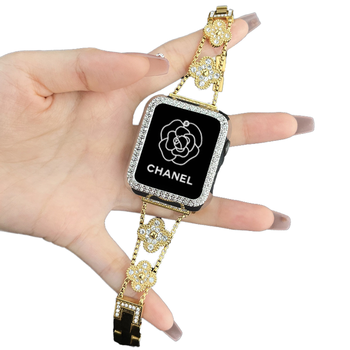 Personalizado de lujo elegante OEM trébol de cuatro hojas correa de reloj Bling rhinestone mujeres reloj correas para Apple iWatch 3 4 5 Series