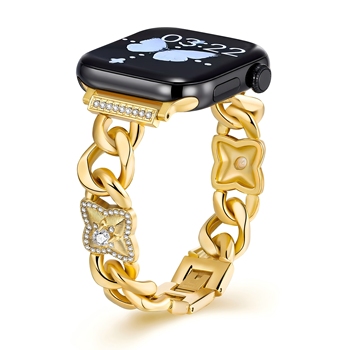 Correa de reloj inteligente Advanced Sense para Apple Watch S10S9 para mujer, flor de trébol de cuatro hojas, hebilla de Metal, Material de acero inoxidable